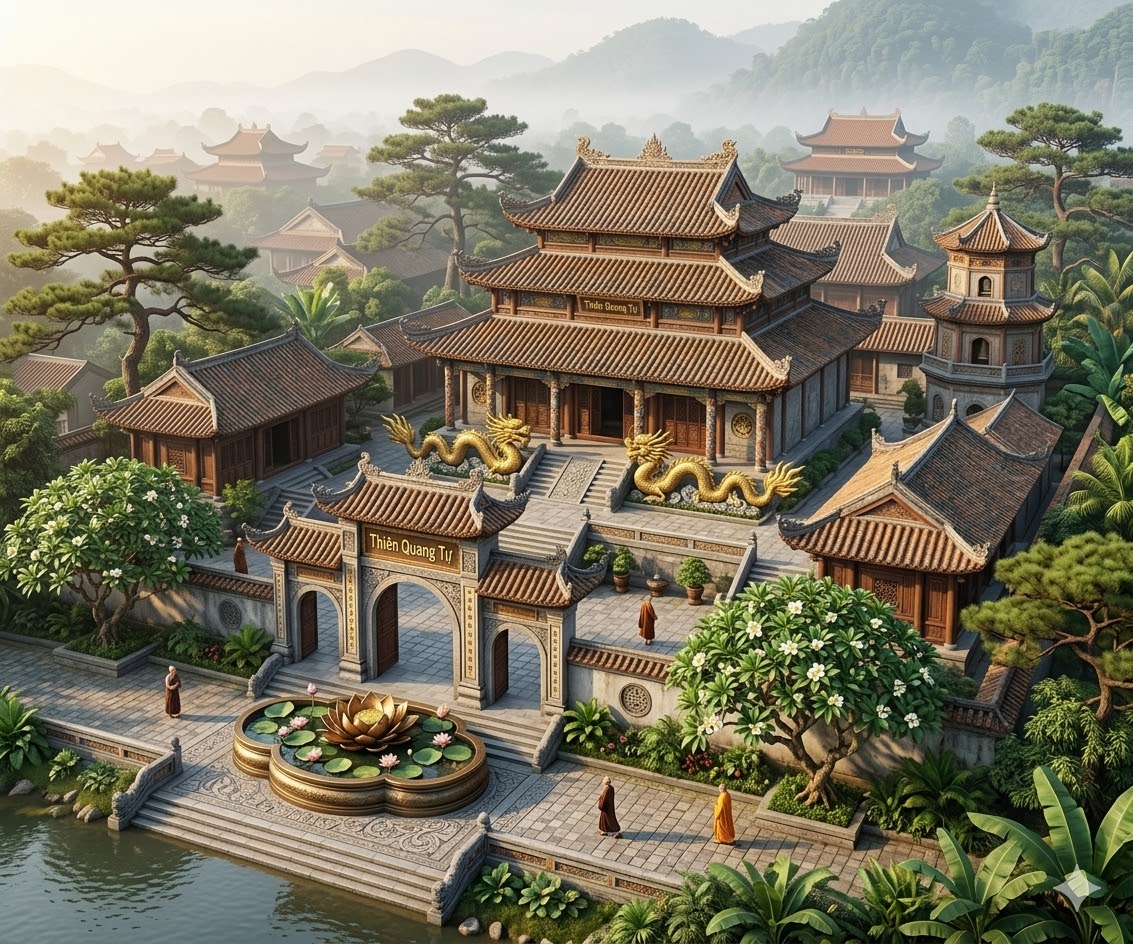 Cúi ngưỡng chư thiện tín, Phật tử, cùng toàn thể nhân dân xa gần, tiếp tục phát khởi tín tâm, đồng lòng hộ trì Tam Bảo, tùy duyên tùy sức mà góp phần công đức, khiến việc trùng hưng Thiên Quang Phạm Vũ sớm được viên thành, đạo tràng ngày một trang nghiêm, pháp âm truyền mãi, phúc huệ song tu, lợi lạc quần sinh.